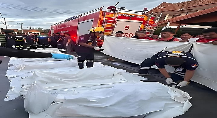 นื่องจากถูกควันและไฟปิดล้อมทั้งหมด ส่งผลให้เสียชีวิตรวม 7 รายในครั้งนี้ หลังเพลิงสงบ เจ้าหน้าที่พิสูจน์หลักฐานและทีมแพทย์นิติเวชเข้าตรวจสอบพื้นที่
